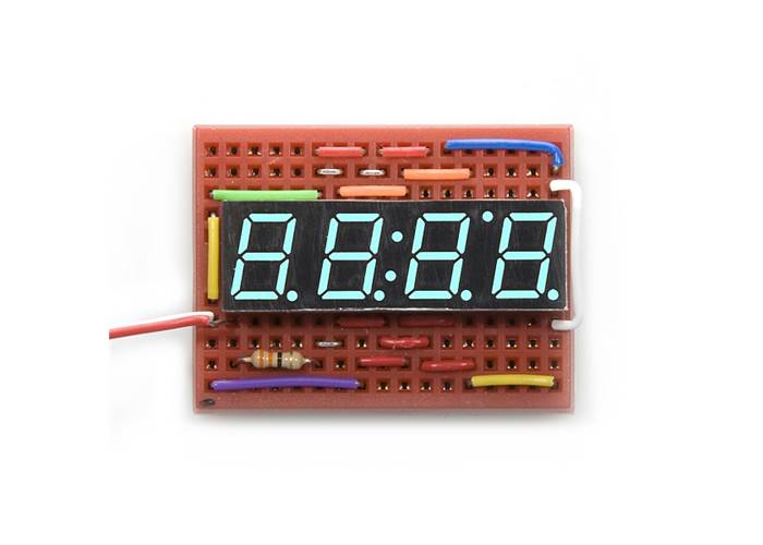 This is a basic 4-digit 7-segment display - blue in colour. It has a common anode. The display features one decimal point per digit and individually controllable apostrophe and colon points.The LEDs have a forward voltage of 3.4VDC and a max forward current of 20mA.