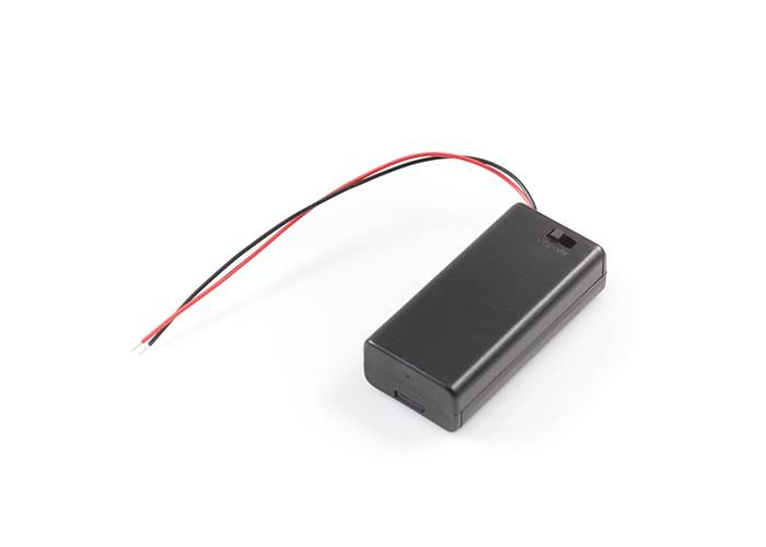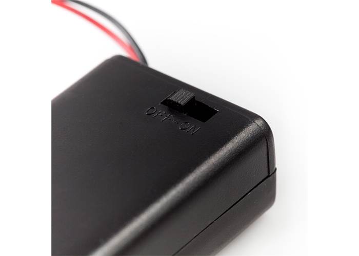 This 2xAA battery holder puts a nice finishing touch on your battery powered project. This holder features a removable, sliding cover, which is secured with a small phillips head screw. Another bonus is the ON/OFF switch which can be used to control power to your project.