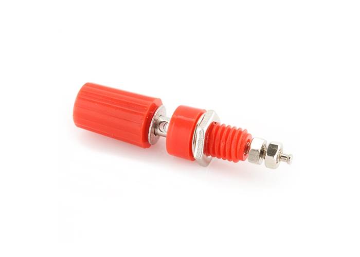 This is a red insulated binding post. These binding posts do accept banana plugs and are a great way to connect single-wire leads. The coloured cap screws up and down and is designed to clamp on the connecting wire.These binding posts are sold individually.