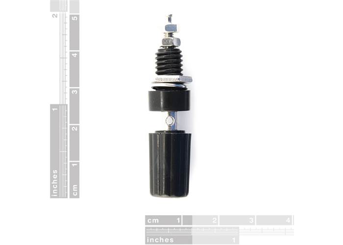 This is a black insulated binding post. These binding posts do accept banana plugs, and are a great way to connect single-wire leads. The coloured cap screws up and down, and is designed to clamp on the connecting wire.