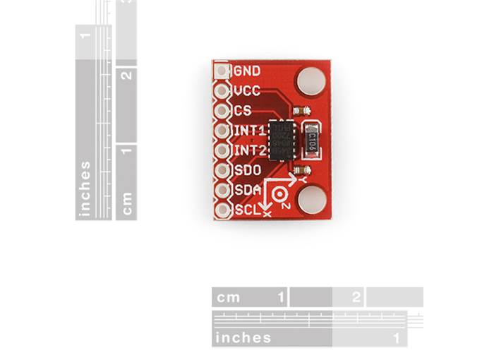 This new version adds 2 standoff holes as well as an extra decoupling capacitor. The ADXL345 is a small, thin, low power, 3-axis MEMS accelerometer with high resolution (13-bit) measurement at up to +-16 g. Digital output data is formatted as 16-bit twos complement and is accessible through either a SPI (3- or 4-wire) or I2C digital interface.