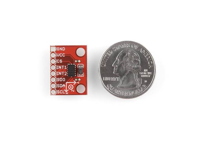 This new version adds 2 standoff holes as well as an extra decoupling capacitor. The ADXL345 is a small thin low power 3-axis MEMS accelerometer with high resolution (13-bit) measurement at up to +-16 g.