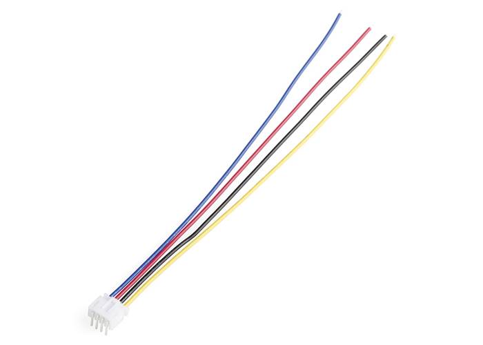 This is a simple four wire cable. Great for jumping from board to board or just about anything else. There is a 4-pin JST connector on one end bare cable on the opposite end. It also comes with the mating connector for the JST.Dimensions: 6" lengthDocuments:JST connectorDatasheet