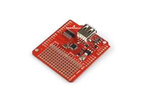 This new version corrects the pin out for the GPX and RESET pins. The SparkFun USB Host Shield contains all of the digital logic and analogue circuitry necessary to implement a full-speed USB peripheral/host controller with your Arduino.
