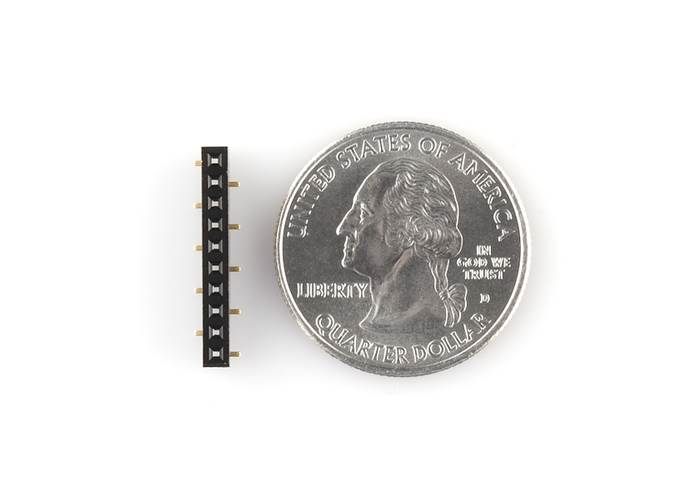 This is a 10-pin socket with 2mm pitch that mates with the popular XBee radio from Digi. This is the SMD version that we are currently using on our shields and breakout boards.