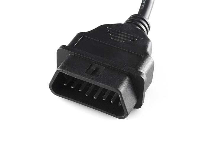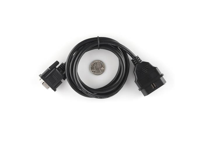 Once you've hacked everything, why not take it outside and hack your car? This cable enables access to the pins on your car's OBD-II connector. It has an OBDII connector on one end and a DE9 (or "DB9") female serial connector on the other. The overall length of the cable is 5'.