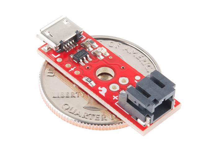 If you need to charge LiPo batteries this simple charger will do just that and do it fast! The SparkFun LiPo Charger Basic is stripped down of all features and just does one thing well - charge 3.7V LiPo cells at a rate of 500mA.