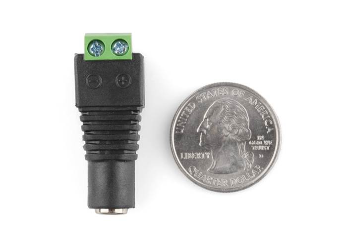 This adaptor allows you to connect a barrel jack connector to bare wires. One end has screw terminals and the other has a 5.5x2.1mm centre-positive female barrel jack. If you have a power supply with a barrel jack and want to plug it into a breadboard this might be the simple solution.