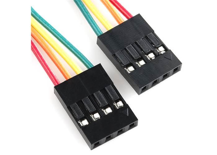 This is a simple four wire cable. Great for jumping from board to board or just about anything else. There is a 4-pin JST RE connector on both ends. These are simple jumper wires used on standard 0.1" breakaway headers.Dimensions: 4" lengthDocuments:Drawing