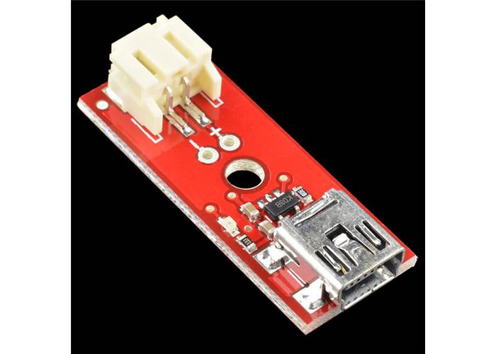 The board incorporates a charging circuit, status LED, connector for your battery (JST-type used in the batteries we carry), and a mini-USB connector. However, we do not recommend this charger with a 110mAh battery.