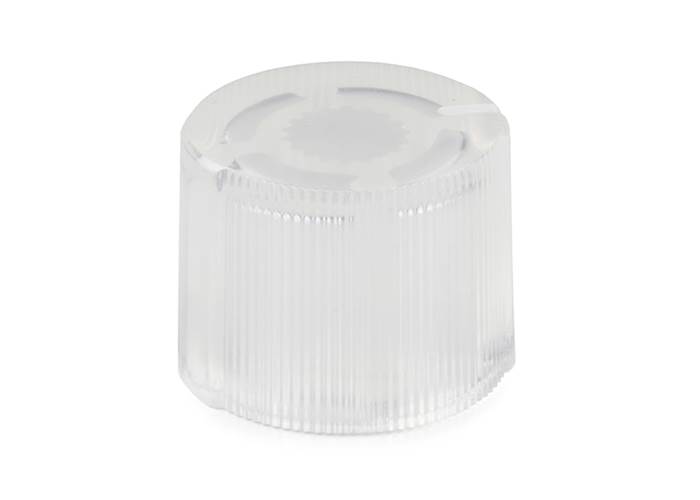 This plastic knob accepts a 6mm shaft and has a 15mm outer diameter. They simple press-fit onto a shaft. These are clear so that they can be used with our illuminated rotary encoders.Documents:Dimensional Drawing