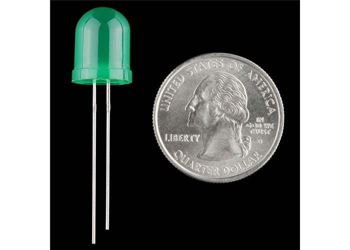Check out these big 10mm through-hole LEDs! The opaque epoxy package causes these LEDs to have a soft diffuse glow.Features:520-525nm Green3.0-3.4VDC Forward Voltage20mA Forward Current40 degree viewing angle150-180 MCD outputDocuments:[Datasheet](http://cdn.sparkfun.com/datasheets/Components/LE...
