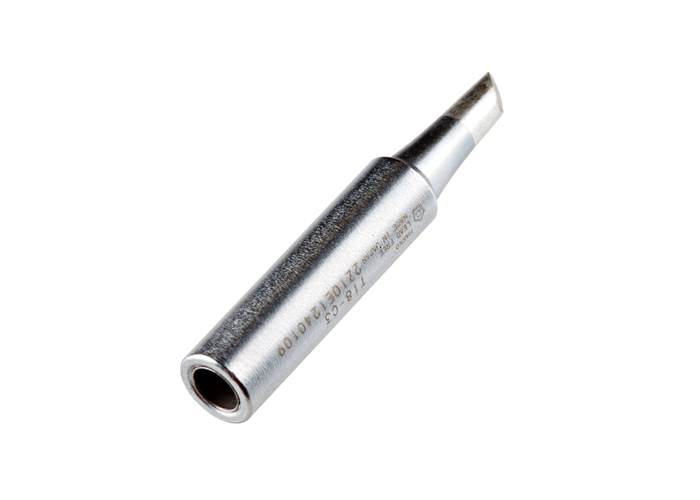 This is a replacement soldering tip for our Hakko FX-888DX soldering iron. This is a bevel type of soldering tip. Replacing the tip is very easy - once the iron is cool, simply unscrew the shield, slip the replacement tip in, and screw the shield back on.