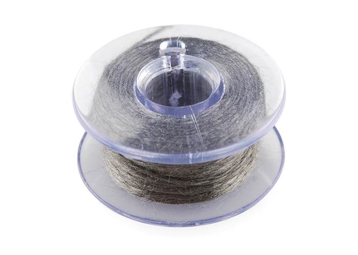 This is 30 feet of conductive thread spun from stainless steel fibre and wound on a plastic bobbin. Use it to sew up all of your e-textile projects. This small bobbin is a great way to get into wearable electronics without the upfront cost of buying an entire spool of thread.