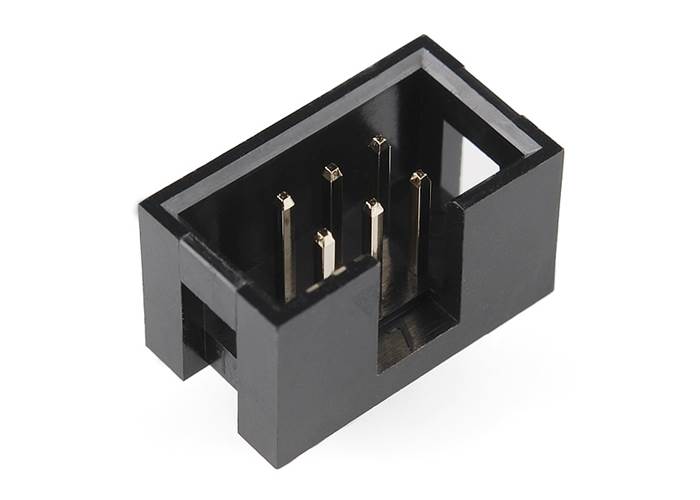 Simple shrouded 6-pin connector. Good for preventing cable connection mishaps. Use for programming data power or any other kind of connection. 2x3 pins on 0.1" centers.Documents:Datasheet