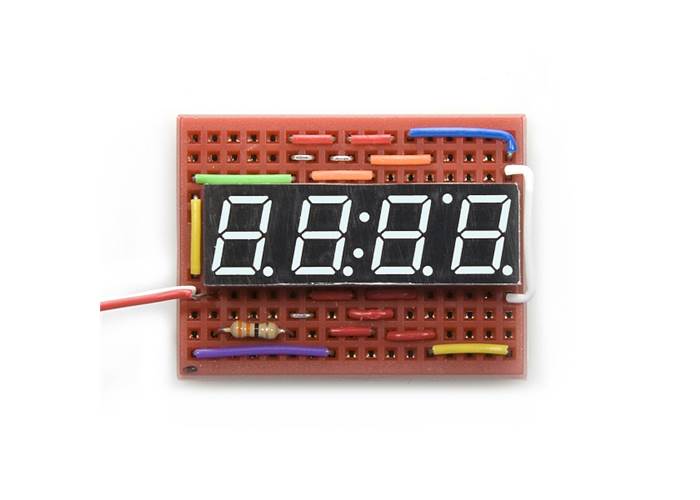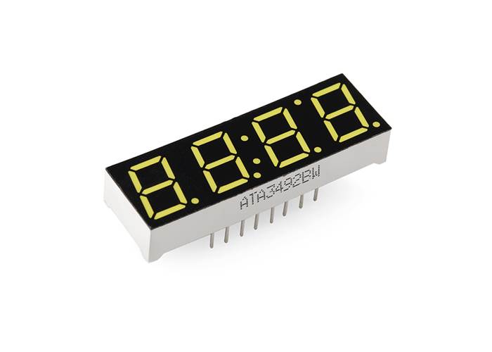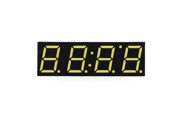 This is a basic 4-digit 7-segment display - white in colour. It has a common anode. The display features one decimal point per digit and individually controllable apostrophe and colon points.The LEDs have a forward voltage of 1.9VDC and a max forward current of 20mA.