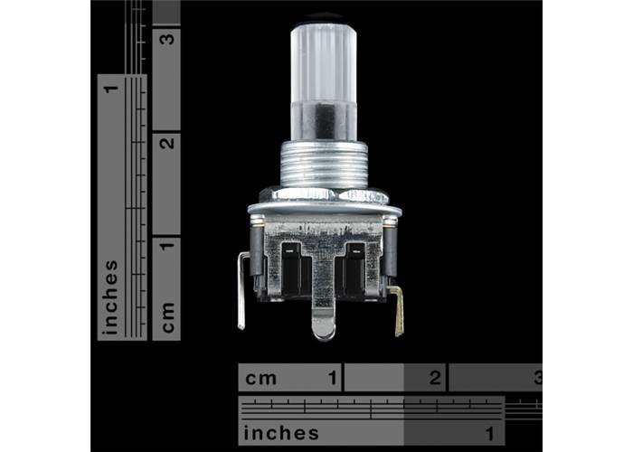This encoder is especially cool because it has a common anode RGB LED built in, as well as a push-button. Look below for the clear knob that goes with this potentiometer.