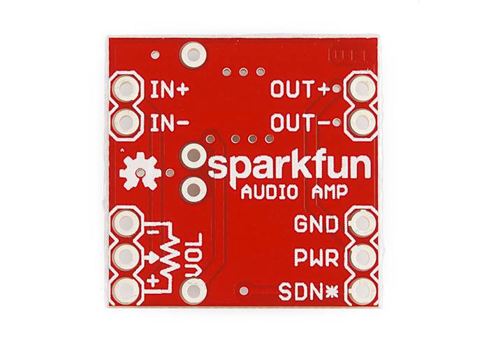 This tiny audio amplifier is based on the Texas Instruments TPA2005D1. Its efficient class-D operation means low heat and long battery life. It can drive an 8-Ohm speaker at up to 1.4 Watts; it won't shake a stadium, but it will provide plenty of volume for your audio projects.