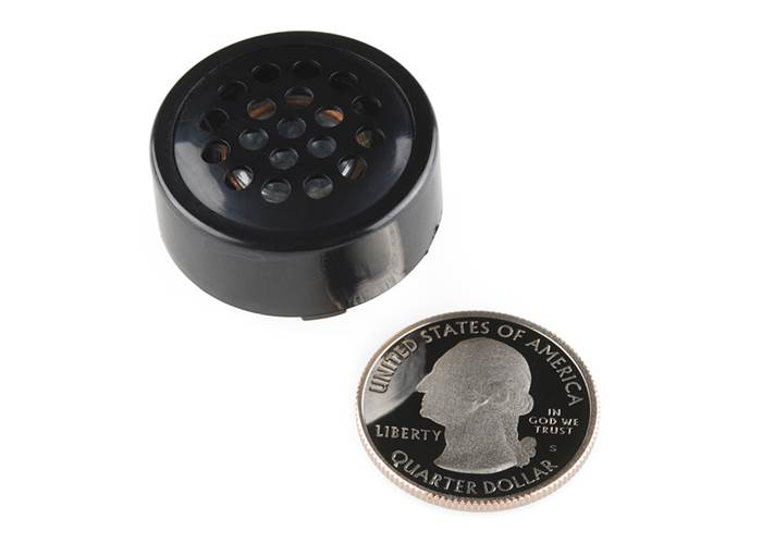 This through-hole speaker is great for projects where you need something that sounds better than a piezo buzzer but don’t have room for a full-blown speaker. This 30mm diameter speaker is encased in plastic and will handle about 100mW of power.