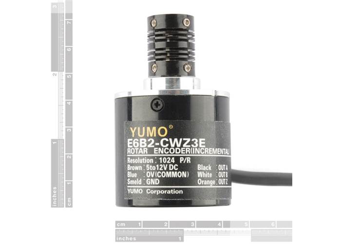 This 1024 pulse per rotation rotary encoder outputs grey code which you can interpret using a microcontroller and find out which direction the shaft is turning and by how much. This allows you to add feedback to motor control systems.