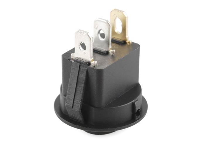 These panel-mounting rocker switches have built-in indicator lights to let you know when your switch is engaged. They mount into a 20.2mm diameter hole and are rated up to 16A @ 12v. These simple SPST on-off switches have three terminals, the two that you would normally see plus a ground tab for the blue LED lamp inside. Although these are rated for 12v, the LED works with as little as 5V.