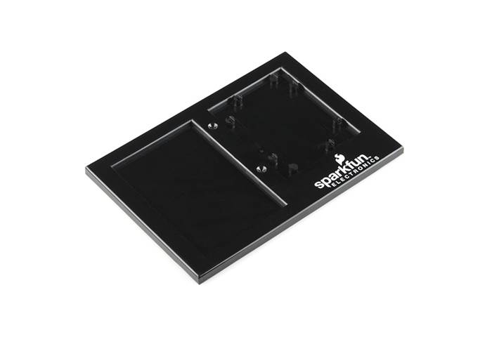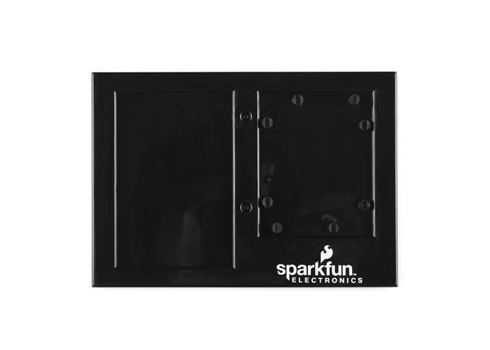 We've been prototyping for a long time on these awesome little plastic plates but it's time for an upgrade. This version still holds an Arduino and a self-adhesive clear breadboard but we've done away with the plastic clips and now provide screws which give you a more solid and simple connection. Also, because the outside dimensions of the board don't matter any more, this plate can be used with any board that has the Arduino mounting holes. The Arduino Uno, The Leonardo, FEZ Panda even the Electric Sheep can all be screwed down to the base plate for easy prototyping. You can even mount the board facing either way you like.