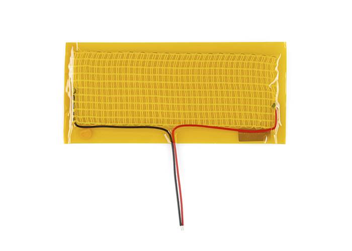 These heating pads are constructed using a mesh of Polyester filament and Micro Metal Conductive Fibre folded into a protective Polyimide Film. The fact that these are low power, flexible and draw little power makes them ideal for things like hand-warmers and other heated garments. Maybe hook up a microcontroller and some sensors and make your own climate-controlled hoodie?