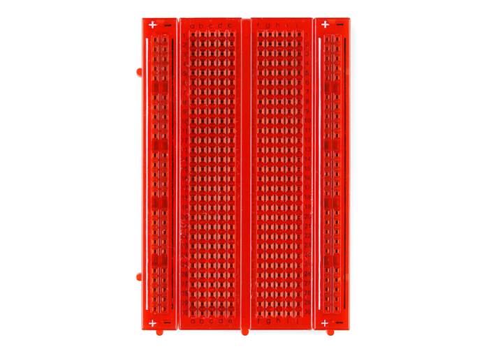 Description: How could anyone improve on the clear plastic breadboard. I mean that's pretty sweet right?What if it was red?This translucent red breadboard is probably the coolest looking regular solderless breadboard there is.