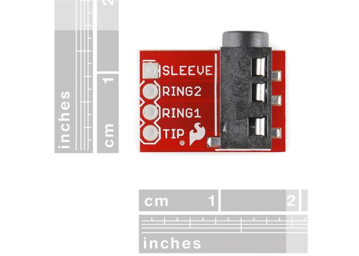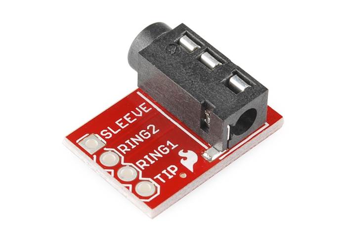 TRRS connectors are the audio-style connectors that you see on some phones, MP3 players and development boards. TRRS stands for "Tip, Ring, Ring, Sleeve," which reflects the fact that, unlike a standard stereo connector, this actually has three conductors and a ground. Some devices use the extra conductor for a microphone (like hands-free headsets) or to carry a video signal (like in some MP3/MP4 players). This breakout board makes it easy to add a TRRS jack to your prototype or project by breaking out each conductor to a standard 0.1" spaced header.