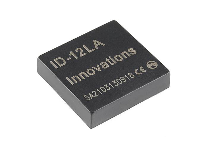 RFID (radio-frequency identification) is the wireless non-contact use of radio-frequency electromagnetic fields, for the purposes of identifying and tracking tags attached to objects. This is the ID-12LA, a very simple to use RFID reader module from ID Innovations. With a built in antenna, the only holdup is the 2mm pin spacing. Power the module, hold up a 125kHz card, and get a serial string output containing the unique ID of the card.