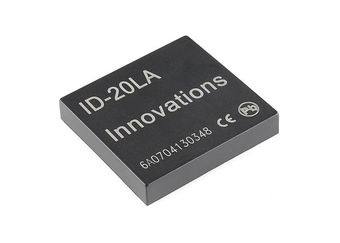 RFID (radio-frequency identification) is the wireless non-contact use of radio-frequency electromagnetic fields, for the purposes of identifying and tracking tags attached to objects. This is the ID-20LA, a very simple to use RFID reader module from ID Innovations. With a built in antenna, the only holdup is the 2mm pin spacing. Power the module, hold up a 125kHz card, and get a serial string output containing the unique ID of the card.