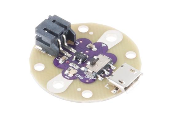 The LilyPad Simple Power is a simple e-textile board with a 500mA charge rate that lets you connect and charge a lipo battery and switch it on or off that's it! We provide you with a JST connector and a slide switch you supply the battery and sewing skills! With this LilyPad Simple Power you s...