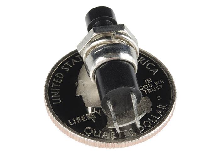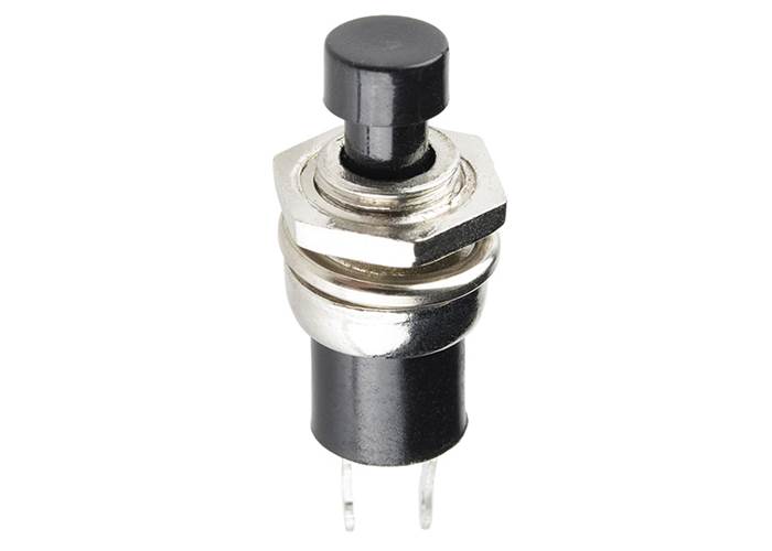 It's your basic black action button! This is a very useful, small, panel-mount momentary switch. It is a SPST N.O. with the threaded portion being 6.75mm in diameter. This button is perfect for basic On/Off functions. Overall length (including leads) is 1.06" and has small solder lugs for connection. These momentary buttons are rated up to 0.5A and 250VAC.