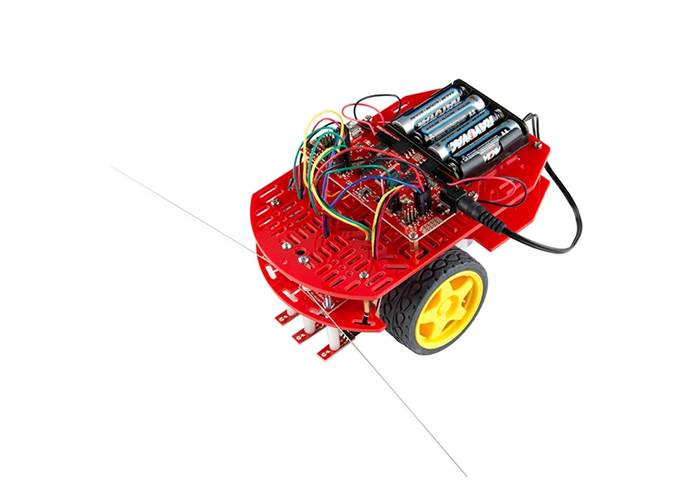 The sensor has a 3-pin header which connects directly to the RedBot Mainboard via female to female jumper wires. Use the included RedBot library to make sure your robot never crashes into anything again.