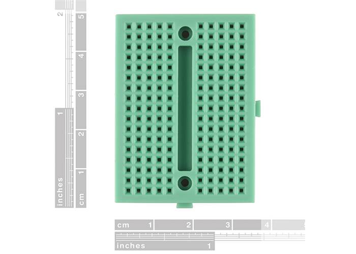 This green Mini Breadboard is a great way to prototype your small projects! With 170 tie points there’s just enough room to build and test simple circuits; They’re also great for breaking out DIP package ICs to jumper wires! If you run out of room, no worries, these mini breadboards can be snapped together to form larger stretches of board. It has a peel and stick adhesive backing as well as two mounting holes for M2 screws so you can anchor it down.