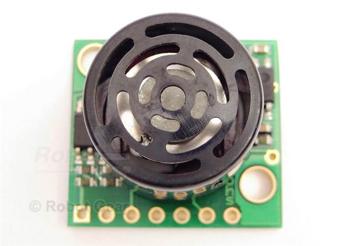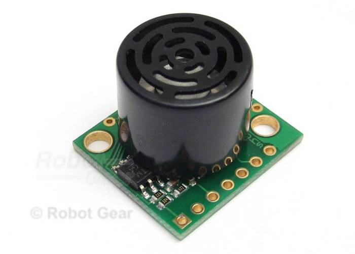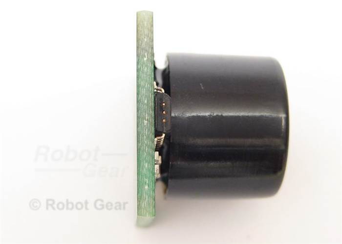 This compact sonar range finder by Maxbotix detects objects from 0 to 6.45 m (21.2 ft) with a resolution of 2.5 cm (1") for distances beyond 15 cm (6"). Unlike other sonar range finders, the LV-MaxSonar has virtually no dead zone: it can detect even small objects up to and touching the front sensor face!