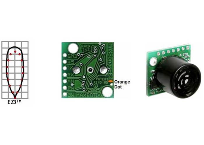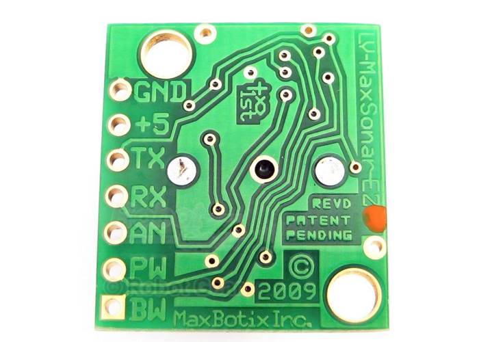 The Maxbotix LV-MaxSonar-EZ family of sonar range finders offers very short- to long-range detection and ranging in an incredibly small package with ultra-low power consumption. The LV-MaxSonar-EZ detects objects from 0 to 6.45 meters (21.2 feet) and provides sonar range information beyond 15 cm (6") with a resolution of 2.5 cm resolution (1 in). Objects between 0 and 15 cm range as 15 cm. The sensor provides three output interfaces, all of which are active simultaneously: digital pulse width output, analogue voltage output, and asynchronous serial digital output. The LV-MaxSonar is available in five factory-calibrated beam patterns (EZ0-4).