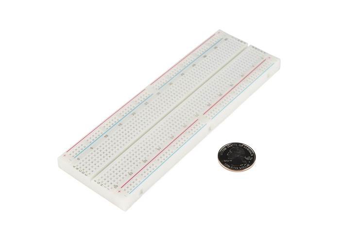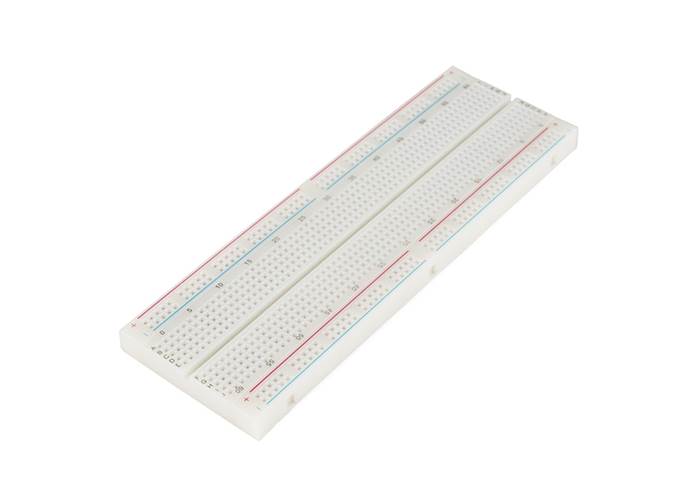 Description: This is your tried and true full size solderless breadboard! It has 2 split power buses 10 columns and 63 rows - with a total of 830 tie in points. All pins are spaced by a standard 0.1".