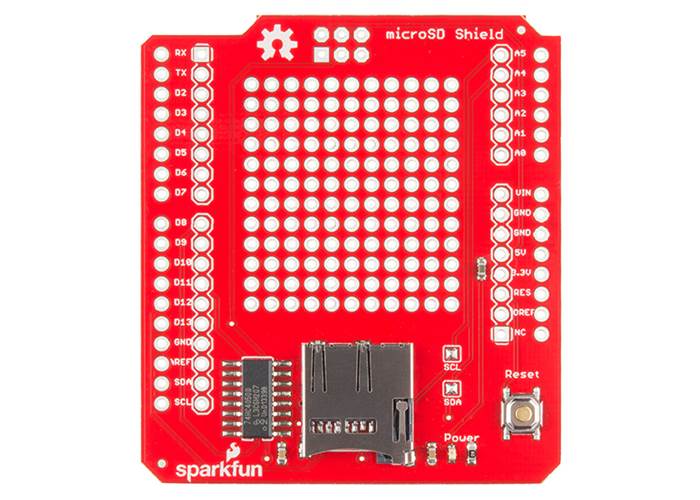 Running out of memory space in your Arduino project? The SparkFun microSD Shield equips your Arduino with mass-storage capability so you can use it for data-logging or other related projects.Communication with microSD cards is achieved over an SPI interface.