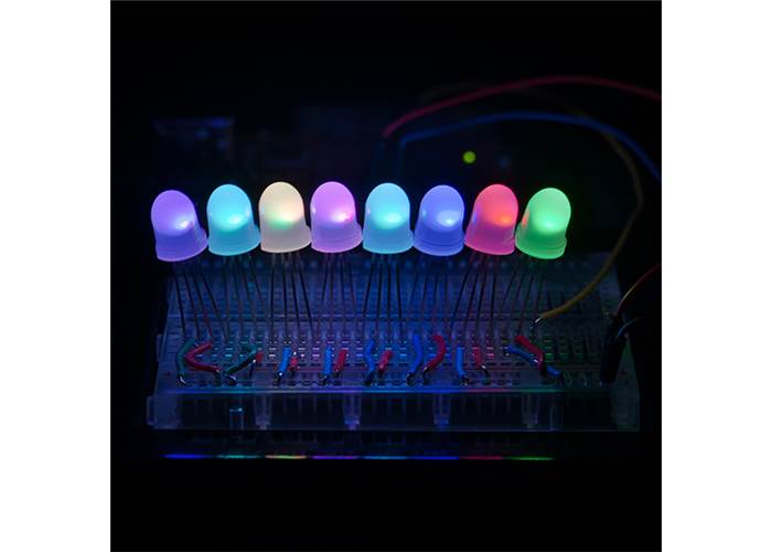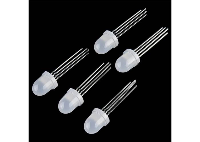 We know this looks like a lot of our other LEDs, but it's not! This is a PTH Addressable RGB LED with a WS2812 control IC built right into the LED. This PTH version is incredibly similar to its SMD cousin, except it is a lot simpler to solder into your project and is in a diffused 8mm package. This RGB LED has the control IC moved into the actual LED, so we wanted to offer this amazing product to you! They’re great when you need a lot of colour from not a lot of board space, now more so than ever.