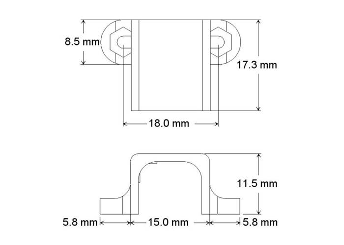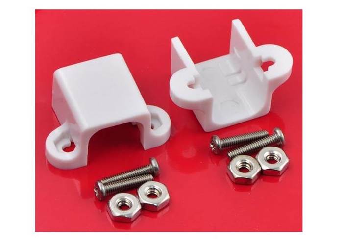 These plastic mounting brackets allow you to easily and securely mount the ubiquitous 10 mm × 12 mm × 26 mm metal gearhead motors first popularized by Sanyo’s 12GN series (e.g. NA1S…NA3S), such as our micro metal gearmotors. We also offer shorter versions of these brackets in black plastic and white plastic.