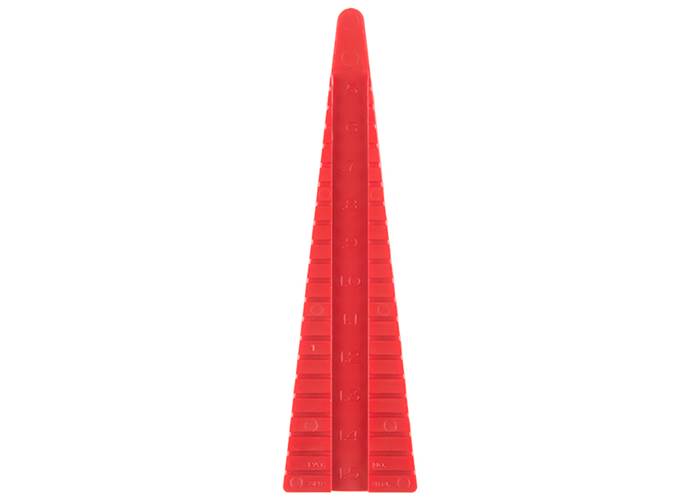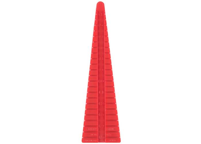 This little piece of notched plastic is a Resistor Lead Bending Tool. Sometimes referred to as a "forming" tool, this little guy provides you with an easy and reliable way to get the exact distance between two resistor leads that you need to PTH soldering. The Resistor Lead Bending Tool is two-sided, with one side offering 0.4"-1.5" spacing for 1/4 Watt resistors and the other side offering 0.5"-1.5" spacing for 1/2 Watt resistors.