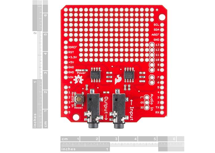 The Spectrum Shield enables your Arduino with the capability of splitting a stereo audio input into 7-bands per channel.