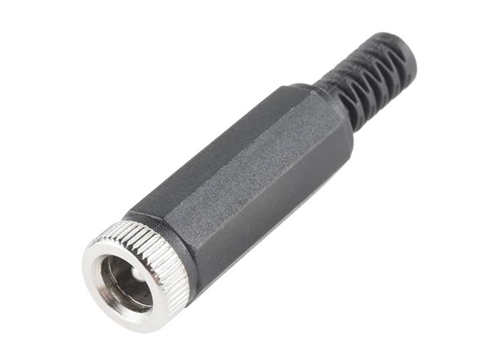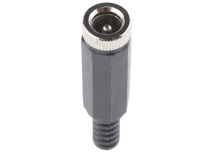 This female barrel jack plug is great for adding a common connector to the end of wires. This jack is compatible with 5.5x2.1mm barrel connectors. The outer shell unscrews to reveal solder terminals and a crimp strain relief. The outer shell has strain relief as well.