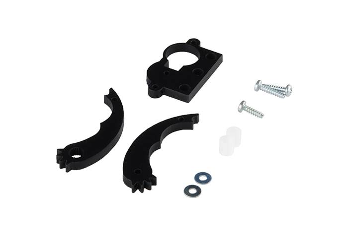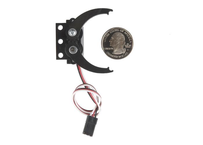 This is the Micro Gripper Kit A, a simple robotics kit that is great for “getting a grip” on smaller robotics projects! Designed for use with any sub-micro size Hitec servo, the gripper kit is easy to assemble and requires only a Phillips Head Screwdriver. This Micro Gripper is capable of opening 2.75" wide max, has an overall body length of 1.7" long with a 1.3" wide servo housing body, and offers three 6-32 mounting thru-holes along the edges of the servo housing.
