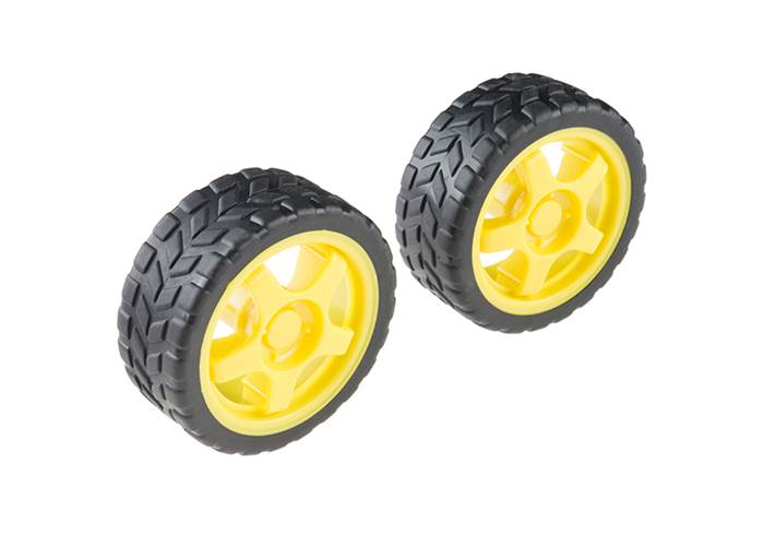 These are a pair of basic, 65mm wheels with black rubber tires. These wheels are the same ones designed to fit onto DAGUs right angle gear motors utilised in the Magician Chassis and RedBot Kit. With these wheels you will be able to get almost any beginners robot project moving.