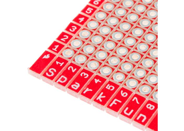 Each SparkFun Snappable Protoboard features a 0.1" spaced, 50x25 Solder Point array totalling up to an impressive 1250 PTH pins that can be broken apart to form a 2x2, 1x50, 24x42, or any size whatsoever as long as it is within the original array size. Don't think of this as just one protoboard, think of it as any number you need.