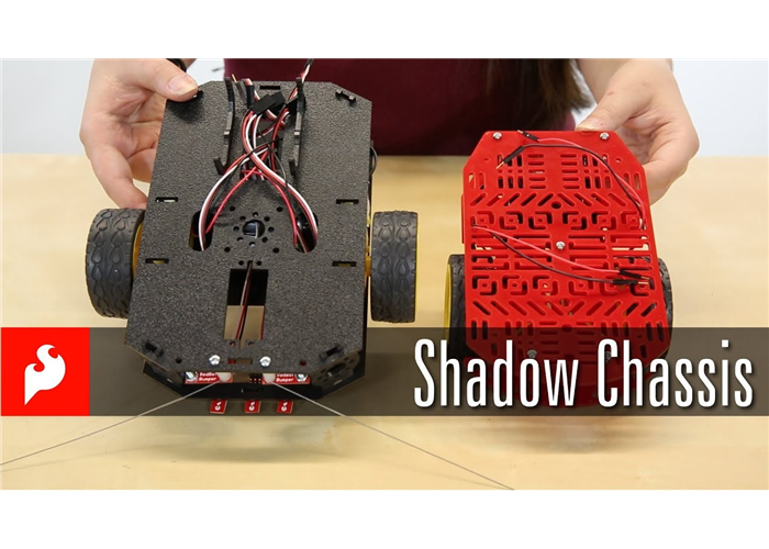 The Shadow Chassis is a marvelously durable and modular robot platform from RobotZone. The chassis plates and mounts are cut from ABS plastic and utilise the Actobotics 0.77" and 1.50" hub patterns for sensors, controllers, power, etc. Simply snap each panel together and you'll be able to attach your motors and favourite robotics controller. With the included "snap on” micro-controller mounts, you can attach an Arduino, Raspberry Pi, SparkFun RedBoard, or SparkFun RedBot Mainboard! This kit even has a mounting hole for a standard size servo as well as a 4xAA battery holder with barrel jack termination.