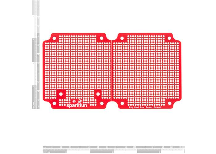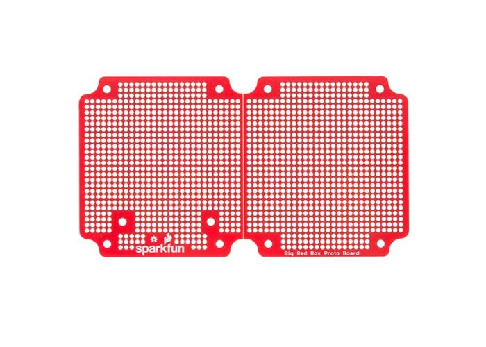 The SparkFun Big Red Box Proto Board is a large custom made PCB that has been specifically designed to be used with and installed into our Big Red Box. This board features a large prototyping area with exactly 1 488 solder points (yes we counted).