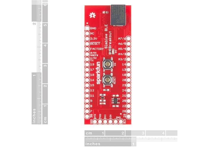 The Simblee RFD77101 module, equipped to this board, is intended to make embedded devices using Bluetooth Low Energy connections easier for everyone: hardware hackers, app developers, students, makers, engineers, and anyone else who wants to leverage their smartphone via BLE. For more information on using the Simblee to create your own applications for embedded project, visit our Simblee Concepts tutorial found in the Documents section below.